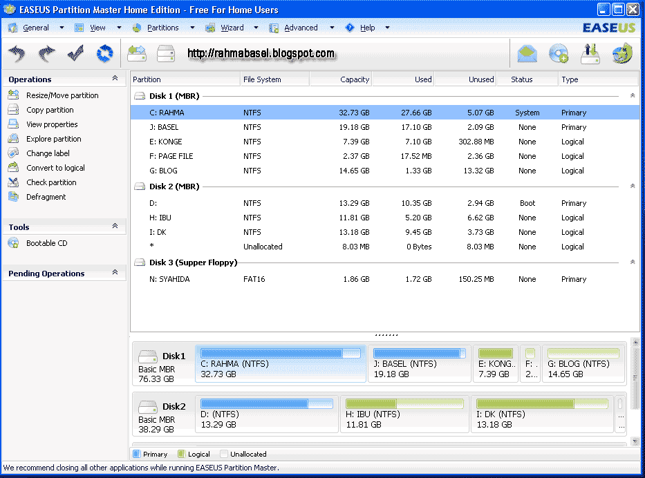 Software EASEUS Partition Master Free merupakan software untuk mempartisi hardisk yang sangat powerfull suport untuk semua jenis windows